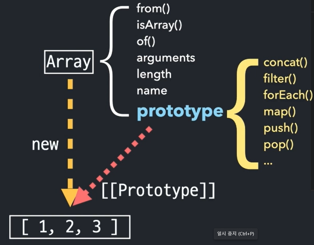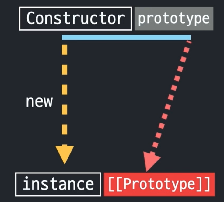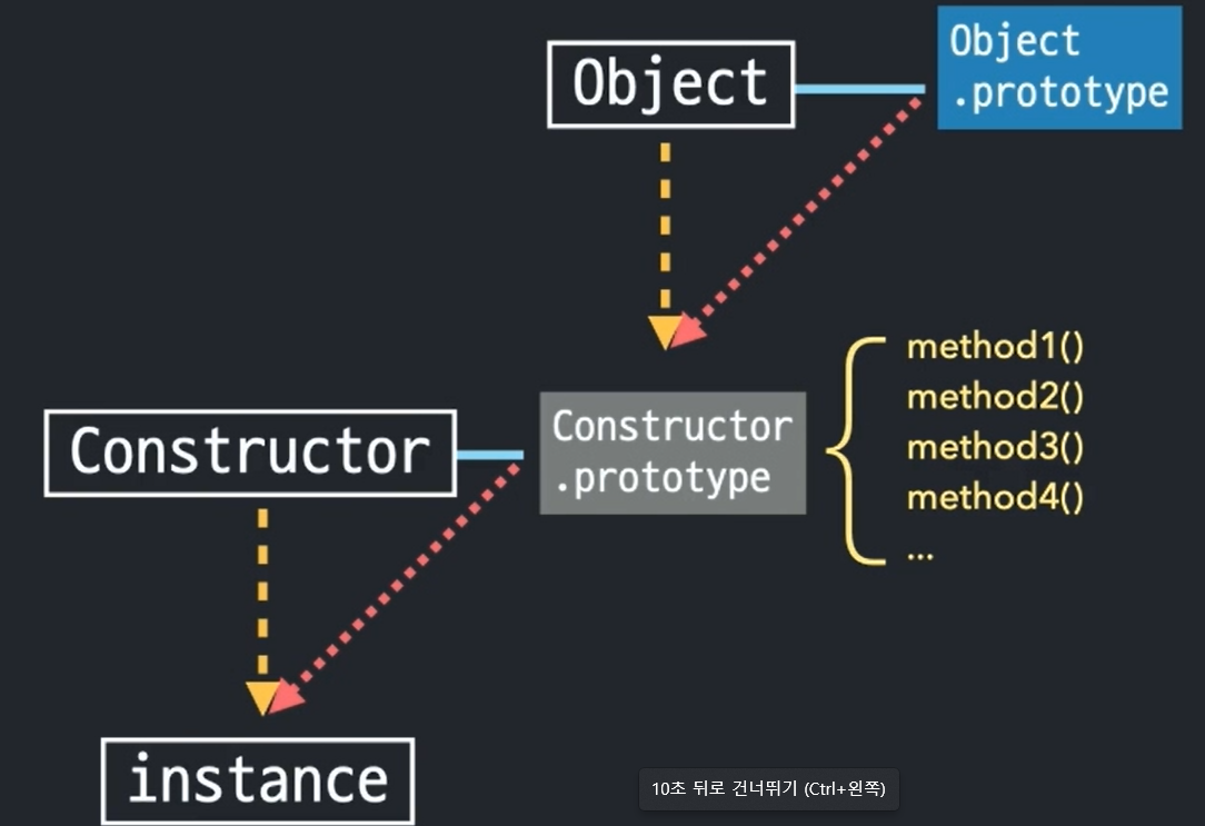 데이터 자신에게는 메서드들이 없지만 생성자의 프로토타입 프로퍼티에 있는 것을 프로토라는 연결 통로에 의해 사용할 수 있게 된다