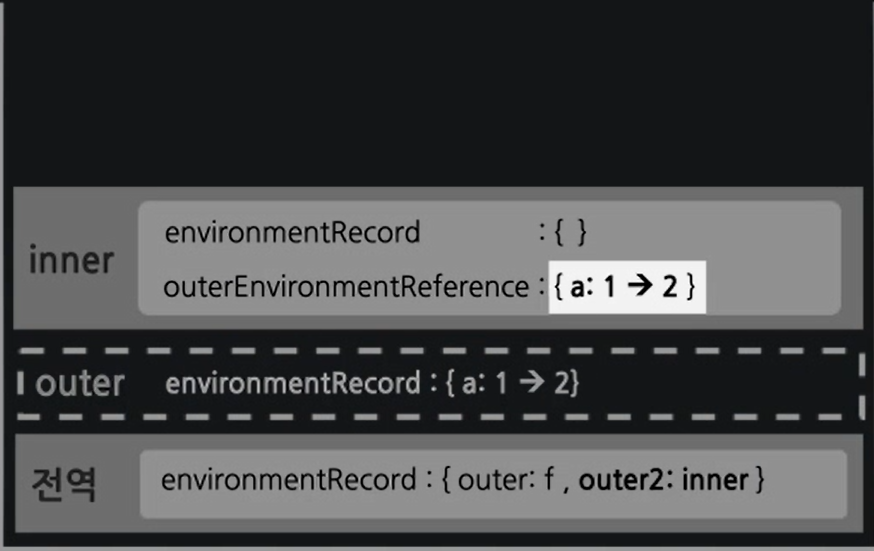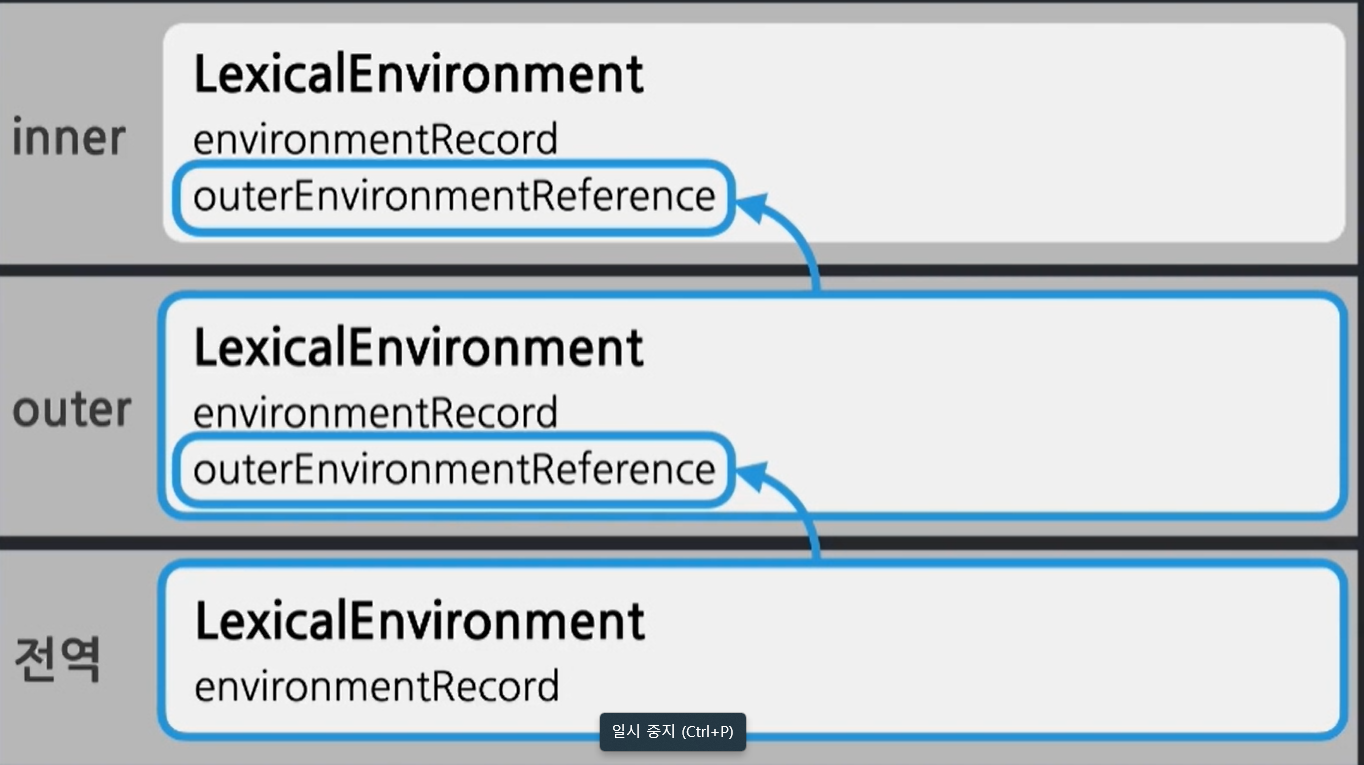 : 현재 문맥과 관련있는 외부 환경 (=LexicalEnvironment) 을 참조하는 식별자 정보들이 담겨 있다
